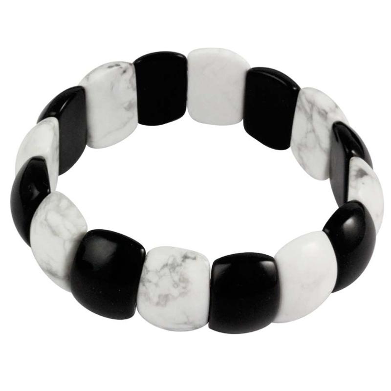 Bracelet composé de howlite et d'onyx aillées de 18mm x 12mm
