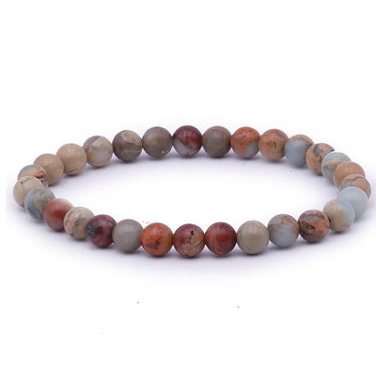 Très beau bracelet composé de boules de jaspe bleue de 5-6mm.