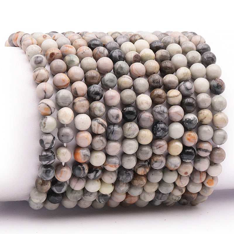 Bracelet jaspe feuille d'argent Afrique du Sud A (boules 5-6mm)