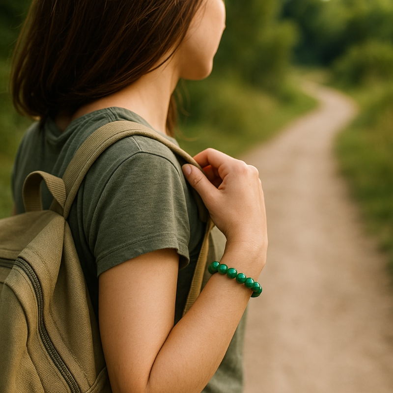 Bracelet élastique composé de boules de malachite de 10mm.