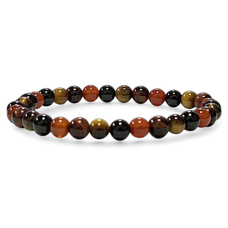 Bracelet multi cornaline, tourmaline, oeil de tigre, oeil de taureau A (boules 5-6mm)