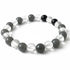 Très beau bracelet élastique composé de boules de 7-8mm d'onyx et cristal de roche