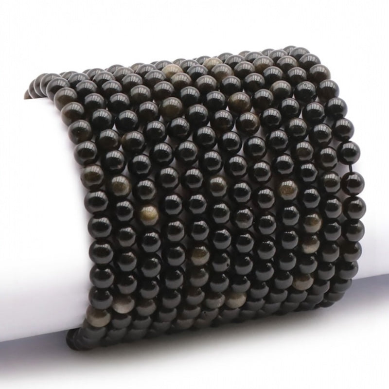 Très beau bracelet composé de boules d'obsidienne dorées de 5-6mm