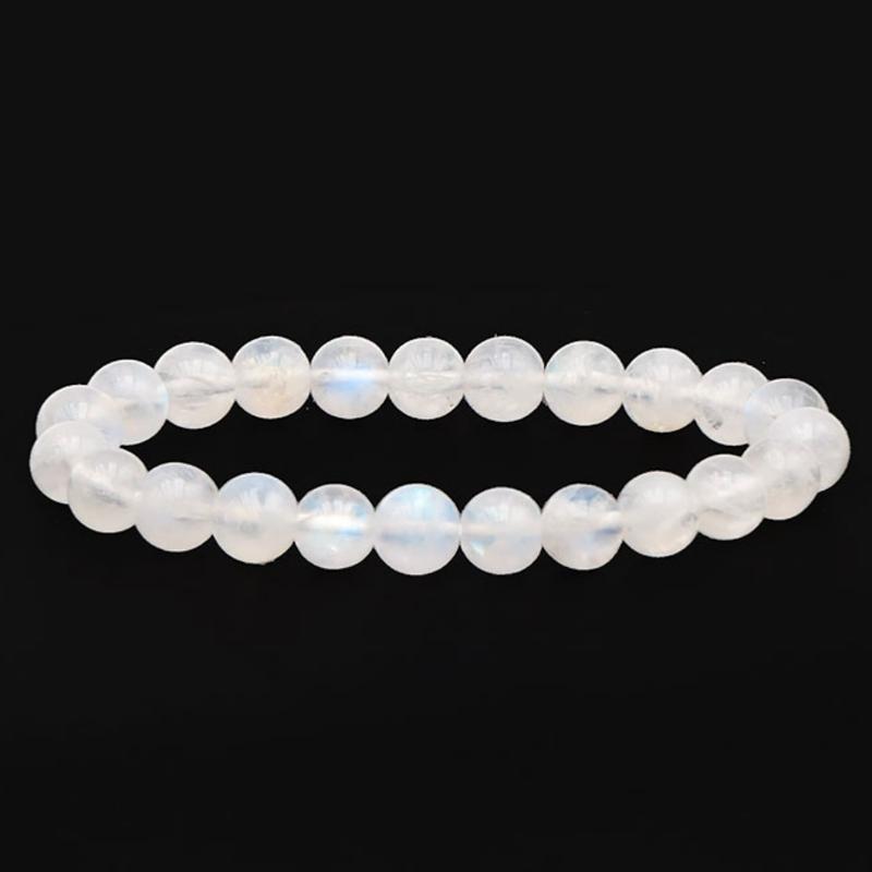 Bracelet élastique composé de boules de 8,5-9,5mm de pierre de lune arc en ciel (péristérite) de qualité AA.