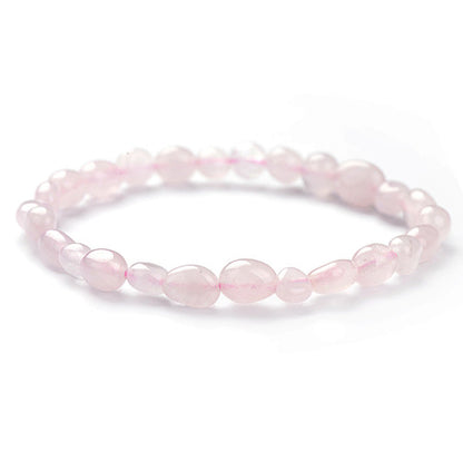 Bracelet composé de petites pierres roulées de quartz rose d'environ 5-7mm.