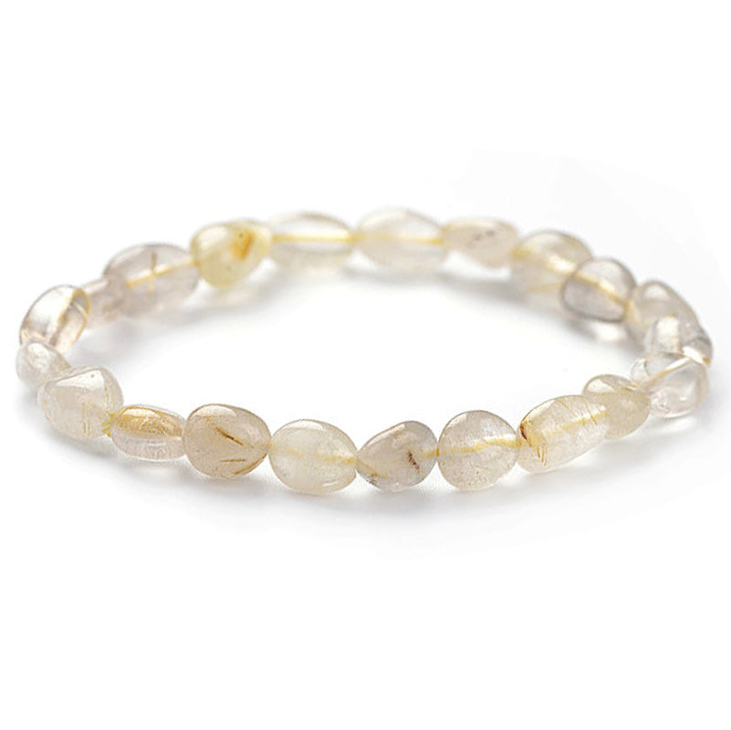 Bracelet composé de petites pierres roulées de quartz rutile d'environ 5-7mm