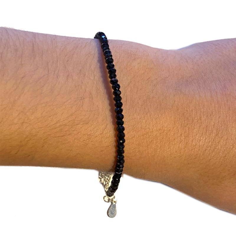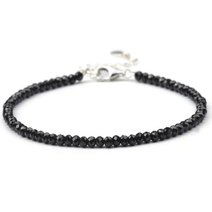 Très beau bracelet composé de perles facettées de spinelle noir de 2-3mm..