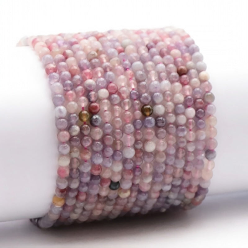 Très beau bracelet composé de boules de 3-4mm de tourmaline rose sur Eudialyte.
