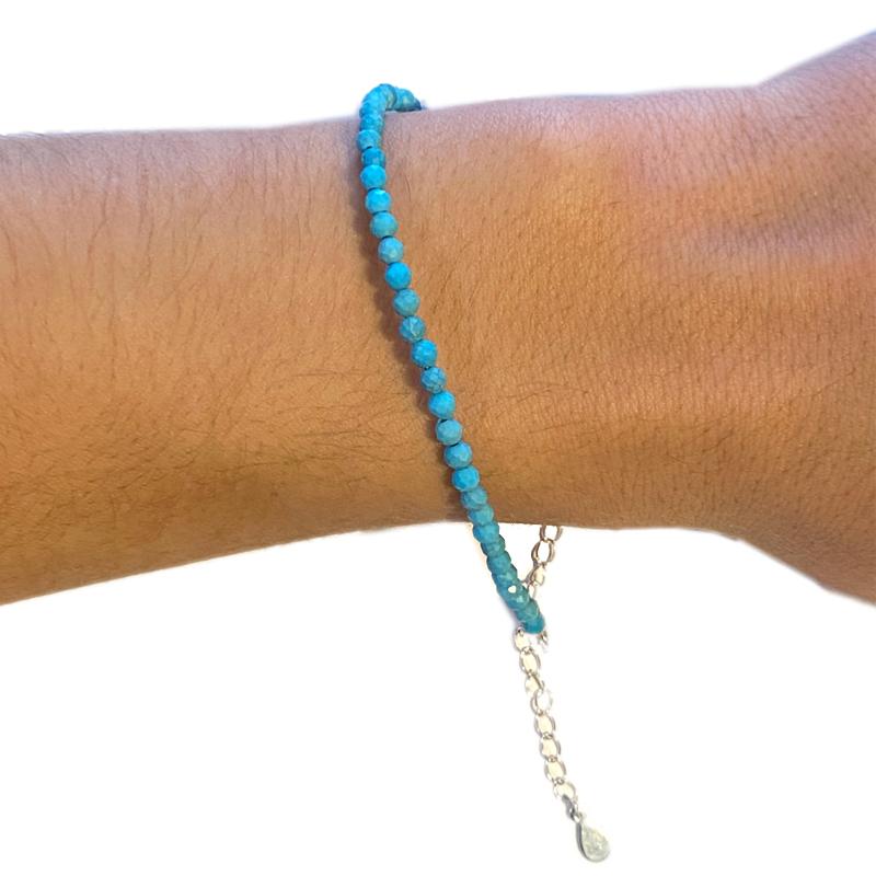 Très beau bracelet composé de perles facettées de turquenite de 2-3mm..