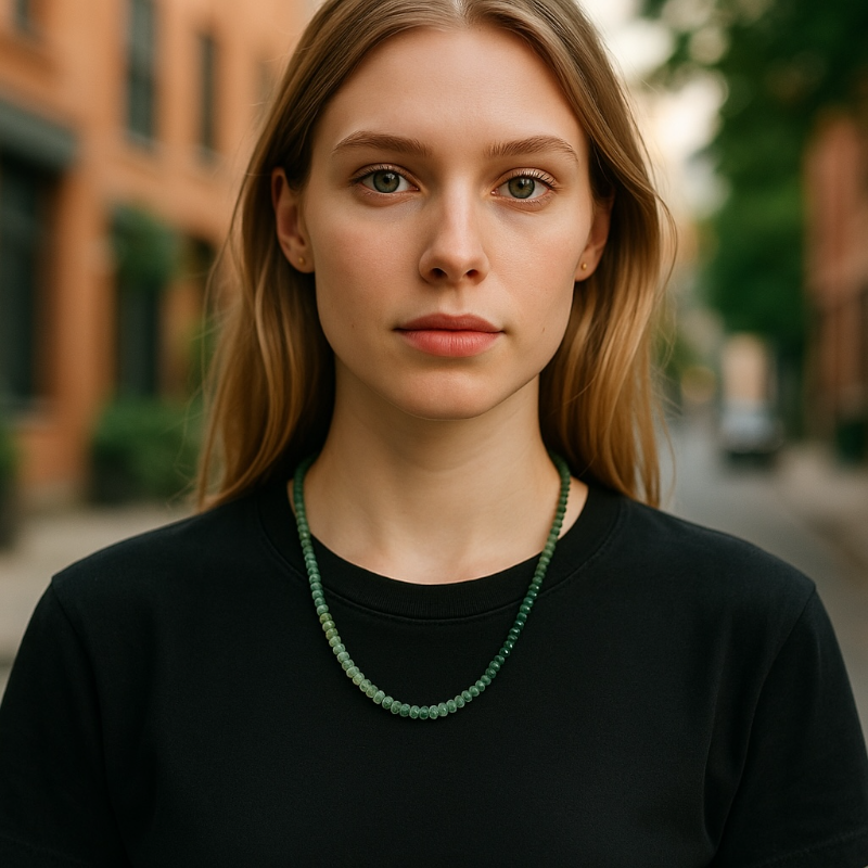 Magnifique collier composé de petits perles facettées d'émeraude de 3mm de 2 couleurs.