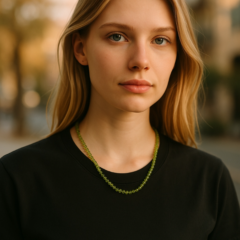 Collier péridot Inde AA (perles facettées 3-4mm) - 45cm
