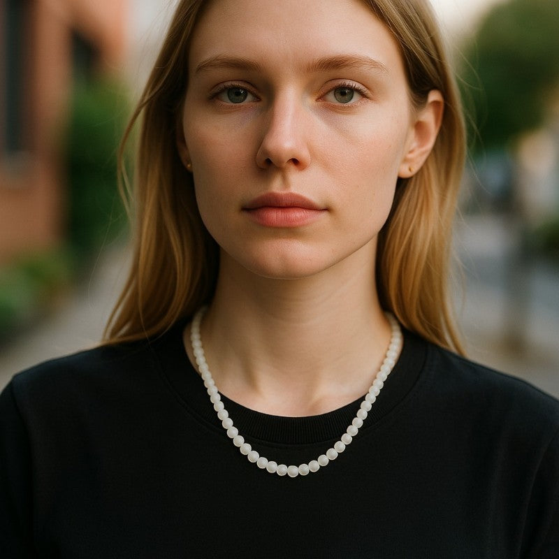 Magnifique collier composé de perles de pierre de lune arc en ciel (péristérite) facettées d'environ 3-4mm.