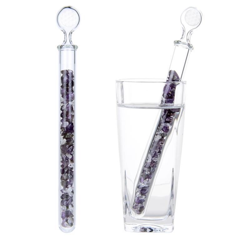 Les bâtons de verre "Space Clearing" sont remplis de petites pierres roulées en cristal de roche et améthyste.