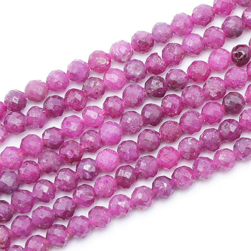 Fil rubis chauffé Inde A perles facettées 3-4mm