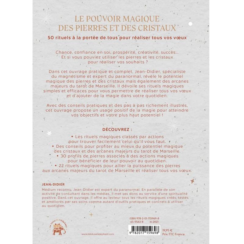 Dans cet ouvrage pratique et complet, Jean-Didier, spécialiste du magnétisme et expert du paranormal, révèle le potentiel  magique des pierres et des cristaux mais également des arcanes majeurs du tarot de Marseille. Il dévoile ses rituels magiques simples et efficaces pour vous permettre de réaliser tous vos vœux et d'ajouter de la magie dans votre quotidien.