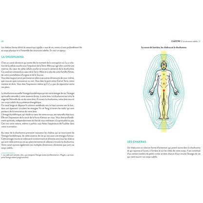 Cet ouvrage vous emmène à la découverte de vos 7 chakras. Vous y trouverez également des excercices simples pour améliorer la circulation de l'énergie en vous. Ceci est une hygiène quotidienne, car de la même façon que vous prenez chaque jour une douche, vos structures subtiles ont besoin, elles aussi, d'un petit nettoyage régulier!