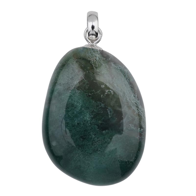 Pendentif agate mousse Brésil A pierre roulée boucle argent 925