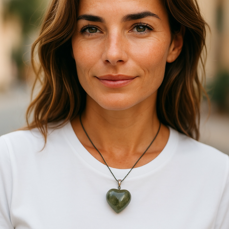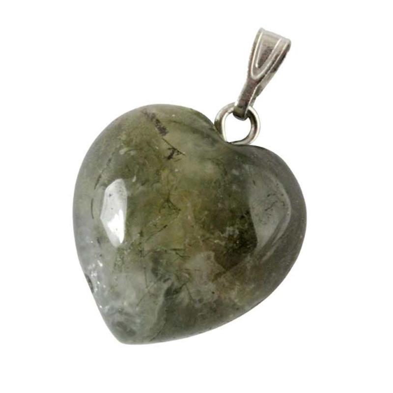 Pendentif coeur agate mousse Brésil A acier inoxydable (15mm)