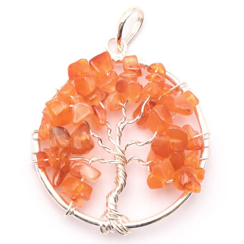 Pendentif arbre de vie cornaline Brésil A 40mm acier inoxydable