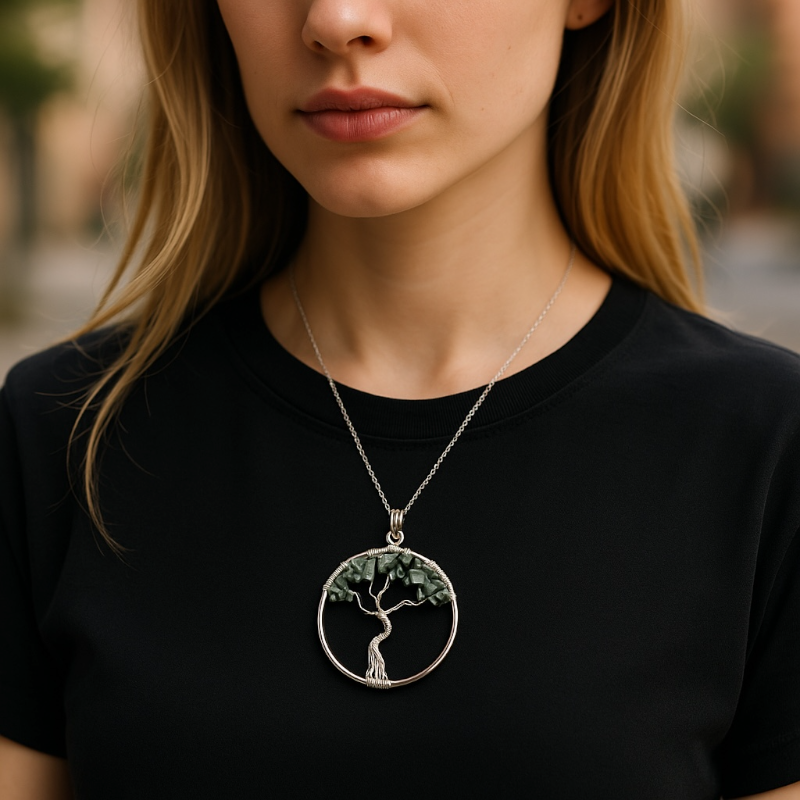 Pendentif arbre de vie emeraude Brésil A 35-40mm acier inoxydable