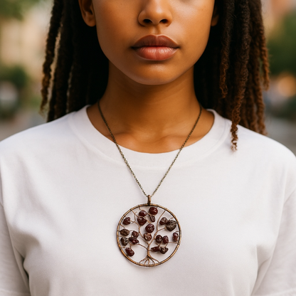 Pendentif arbre de vie grenat rouge almandin 50mm + cordon