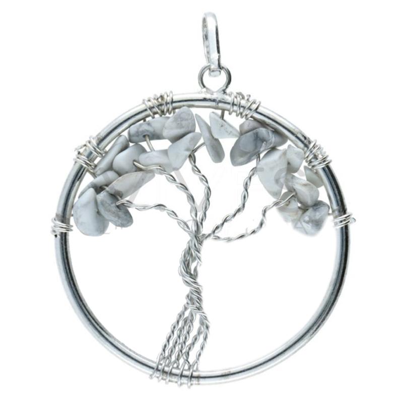 Pendentif arbre de vie howlite Zimbabwe A 35-40mm acier inoxydable