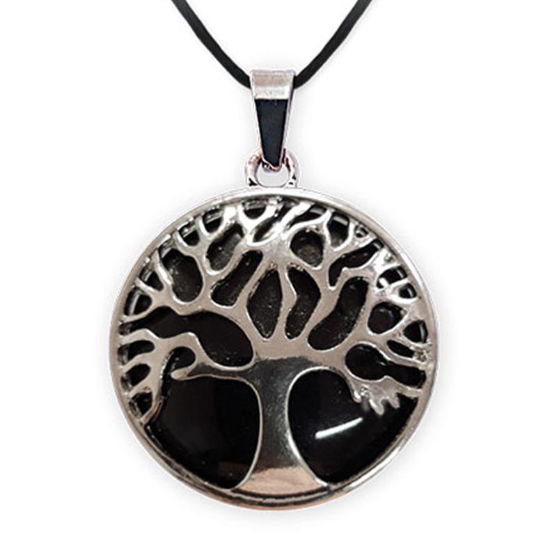Pendentif arbre de vie en acier inoxydable enfermant une onyx d'environ 30mm.