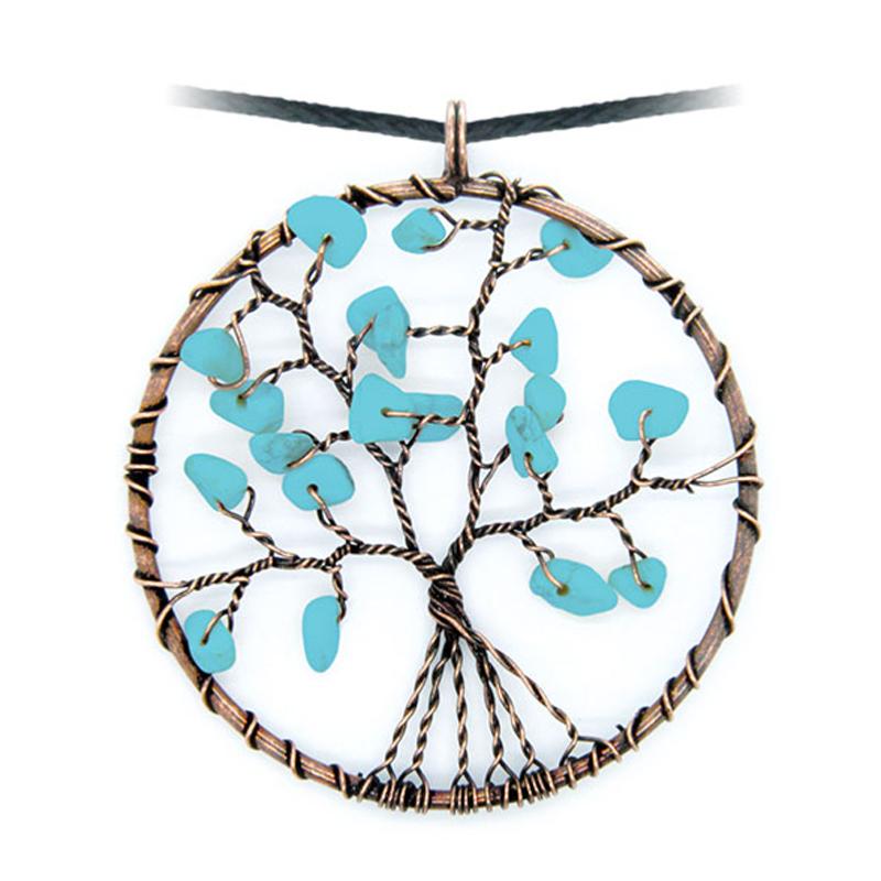Pendentif arbre de vie en acier cuivré de 50mm avec de petits fragments de turquenite