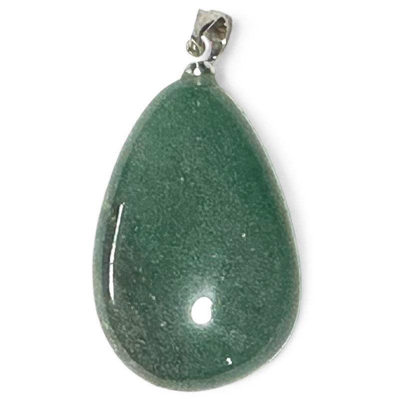 Pierre roulée d'aventurine verte d'environ 20-30mm percée par un une bélière en acier.