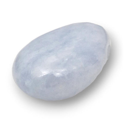 Calcite bleue percée afin de pouvoir être portée en pendentif d'environ 3cm x 2cm (peut varier légèrement).