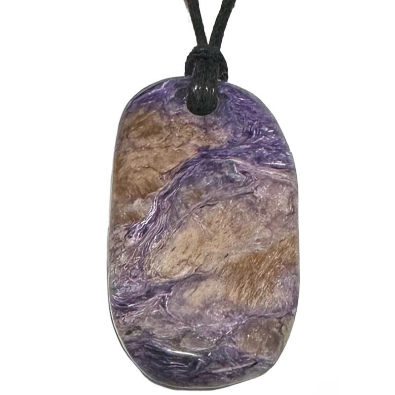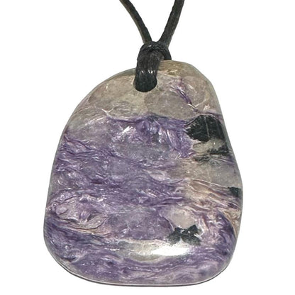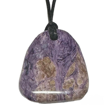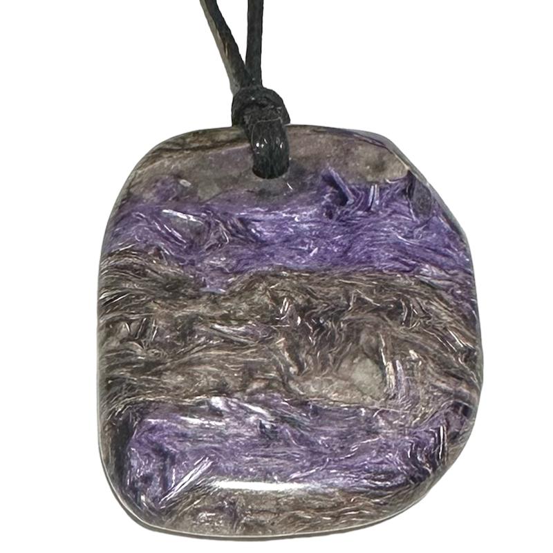Pendentif charoite Russie AA (pierre plate) + cordon