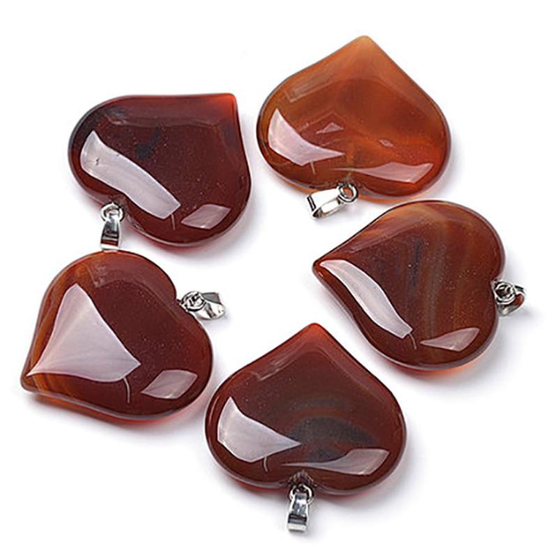 Grand cœur de cornaline de 40mm avec une bélière en acier inoxydable.