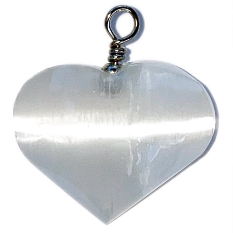Pendentif composé d'un coeur de sélénite d'environ 30mm x 20mm,