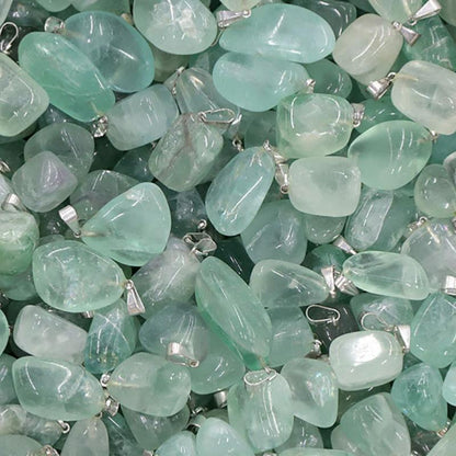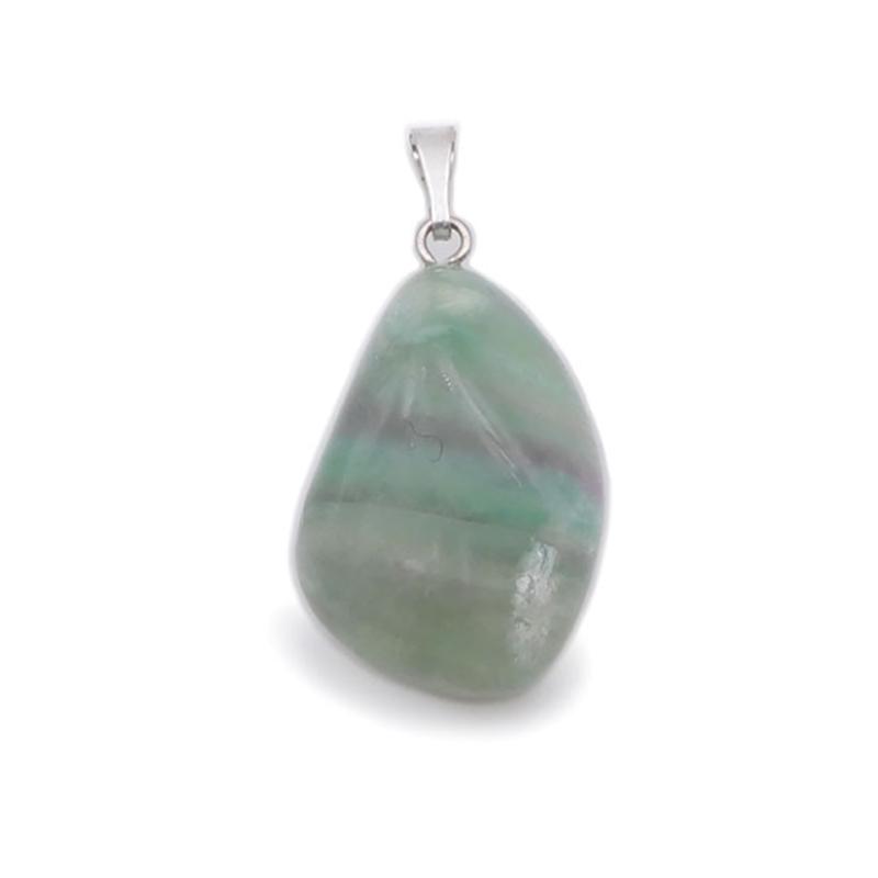 Pendentif composé d'une pierre roulée de fluorine verte d'environ 20-25mm (peut légèrement varier).