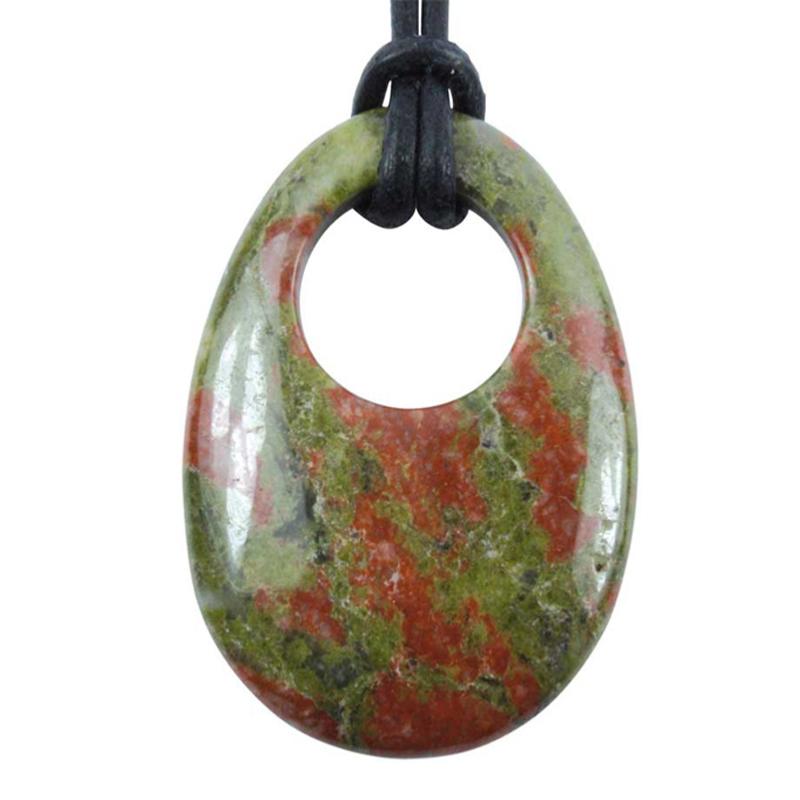 L’unakite appartient à la famille des granites altérés. Elle se compose d'aluminium, de fer et de silicate de calcium. Ses inclusions d’épidote verte, d’orthose (feldspath de couleur rose à orangé) et de quartz incolore lui donnent un panel de couleurs très étonnant. En effet, sa teinte de base évolue du vert-jaune au vert foncé, puis elle arbore des tâches qui varient du rose au rougeâtre. Son système cristallin monoclinique lui procure des cristaux à l’apparence irrégulière engendrant toutes sortes de formes.