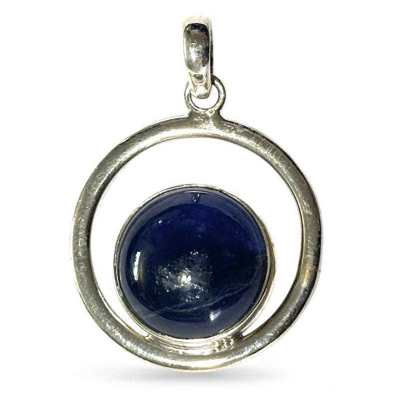 Très beau pendentif argent 925 en forme de cercle composé d'un cabochon rond de iolite de 16-17mm