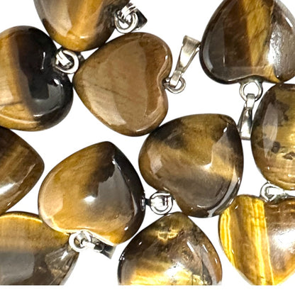 Petit cœur d’œil de tigre de 15mm x 15mm avec une bélière en acier inoxydable.