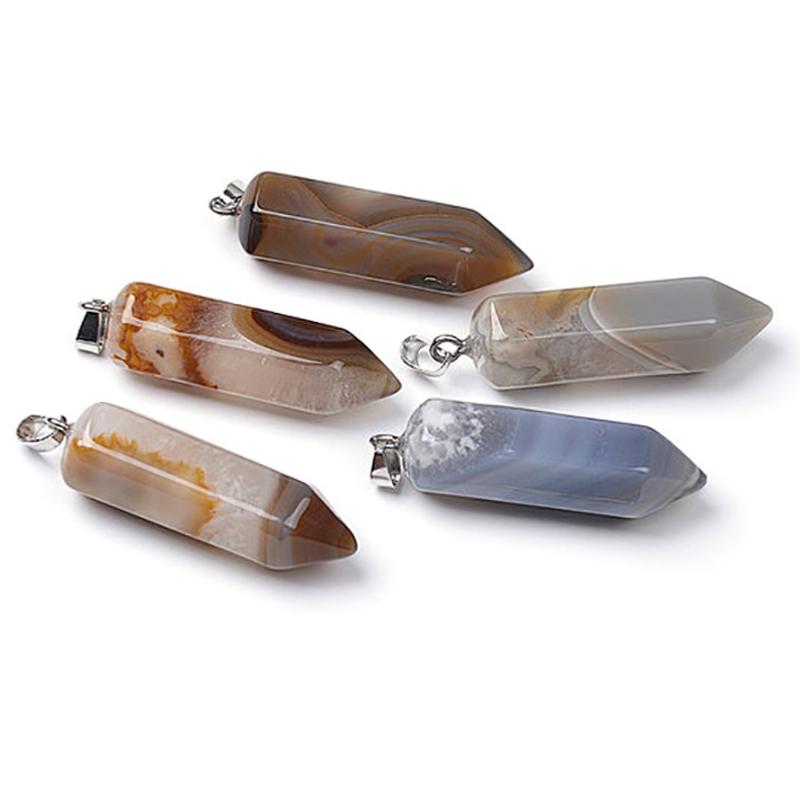 Pendentif composé d'un prisme d'agate naturelle de 45mm avec bélière en acier.