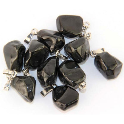 Pendentif composé d'une pierre roulée de spinelle noir d'environ 15-25mm avec boucle argent 925. Les dimensions et formes peuvent varier d'une pierre à une autre.