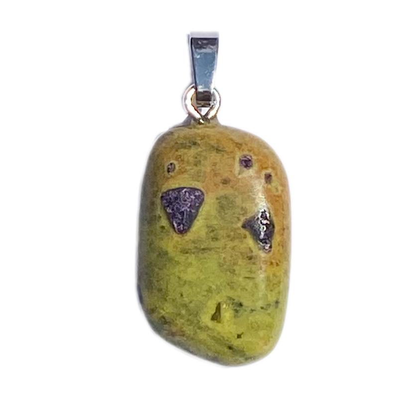 Pendentif composé d'une pierre roulée de Stichtite dans serpentine avec boucle argent.