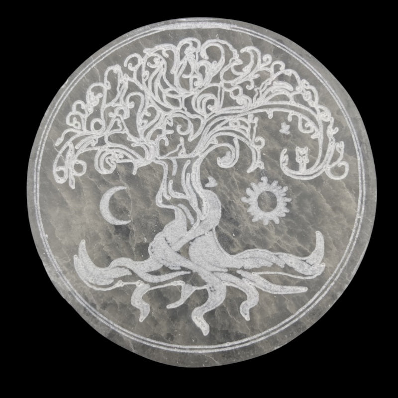 Plaque de rechargement sélénite arbre de vie - 100mm
