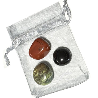 Pochette en organza contenant 3 pierres roulées (15-25mm / Qualité A).