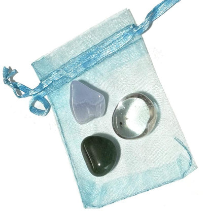 Pochette en organza contenant 3 pierres roulées (15-25mm / Qualité A).