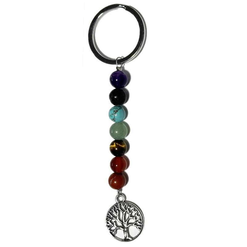 Porte clefs composé de 7 boules représentant les 7 chakras de 8mm et d'une fleur de vie.