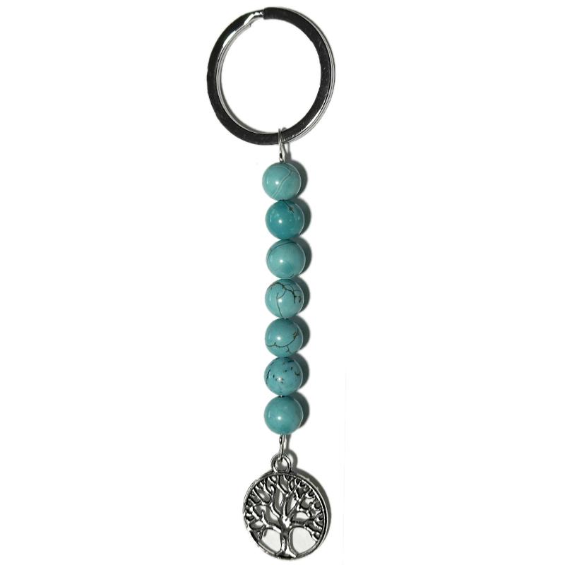 Porte clefs composé de 7 boules de 8mm de turkénite et d'une fleur de vie.