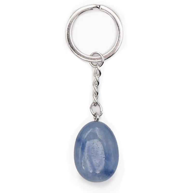 Porte clefs composé d'une pierre roulée d'aventurine bleue ou quart bleu.