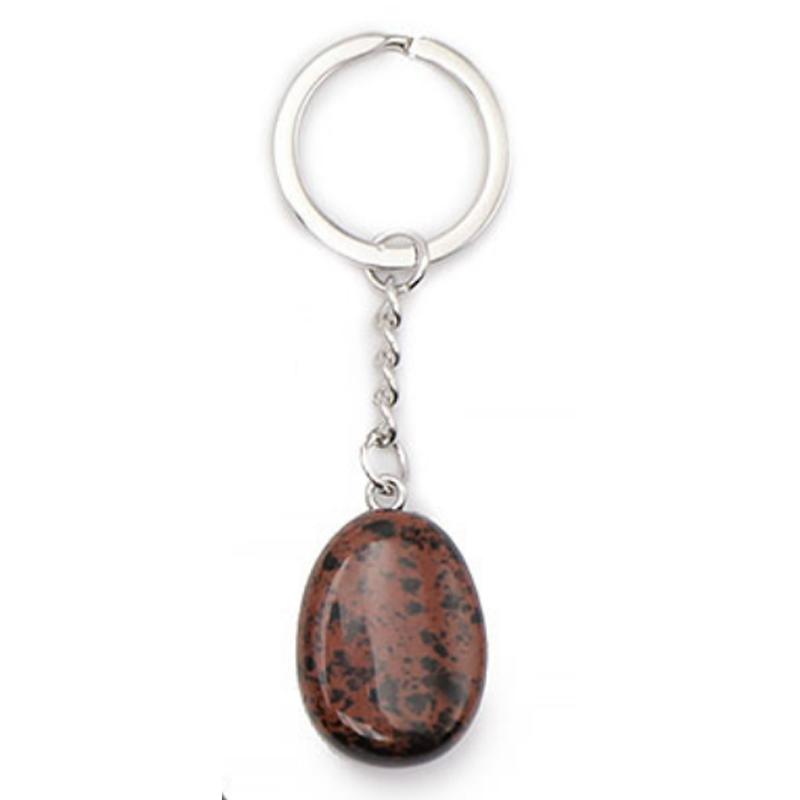 Porte clefs composé d'une pierre roulée d'obsidienne acajou