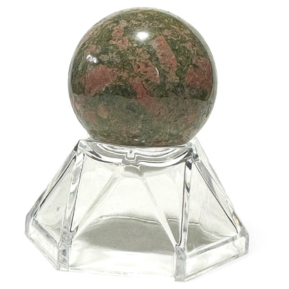 L’unakite appartient à la famille des granites altérés. Elle se compose d'aluminium, de fer et de silicate de calcium. Ses inclusions d’épidote verte, d’orthose (feldspath de couleur rose à orangé) et de quartz incolore lui donnent un panel de couleurs très étonnant. En effet, sa teinte de base évolue du vert-jaune au vert foncé, puis elle arbore des tâches qui varient du rose au rougeâtre. Son système cristallin monoclinique lui procure des cristaux à l’apparence irrégulière engendrant toutes sortes de formes.